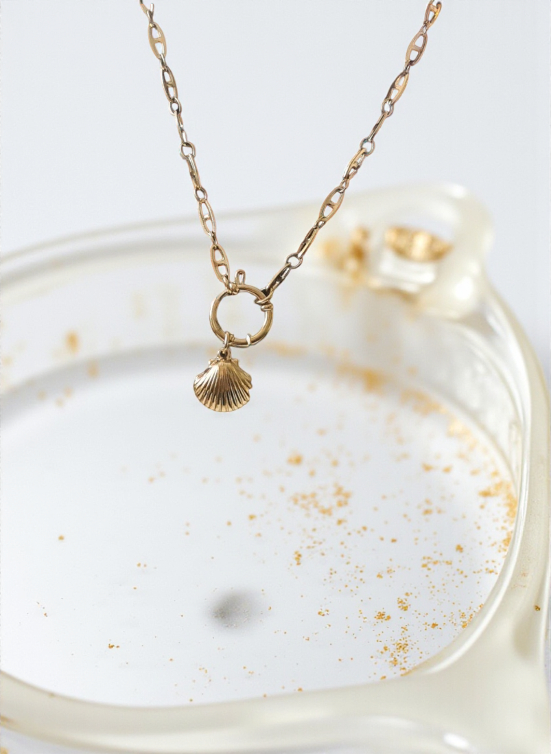 collier avec fermoir à l'arrière avec chainette - et mousqueton pour pampille devant .