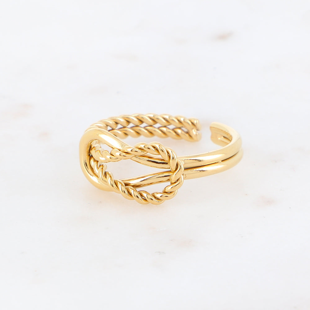 Bague en acier inoxydable ornée d'un noeud, lisse et tressé.