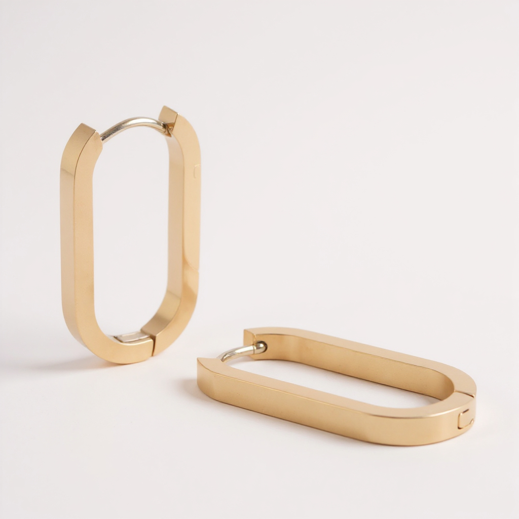 Boucles d'oreilles type créoles avec fermoir à charnière en acier inoxydable composées d'un anneau ovale.