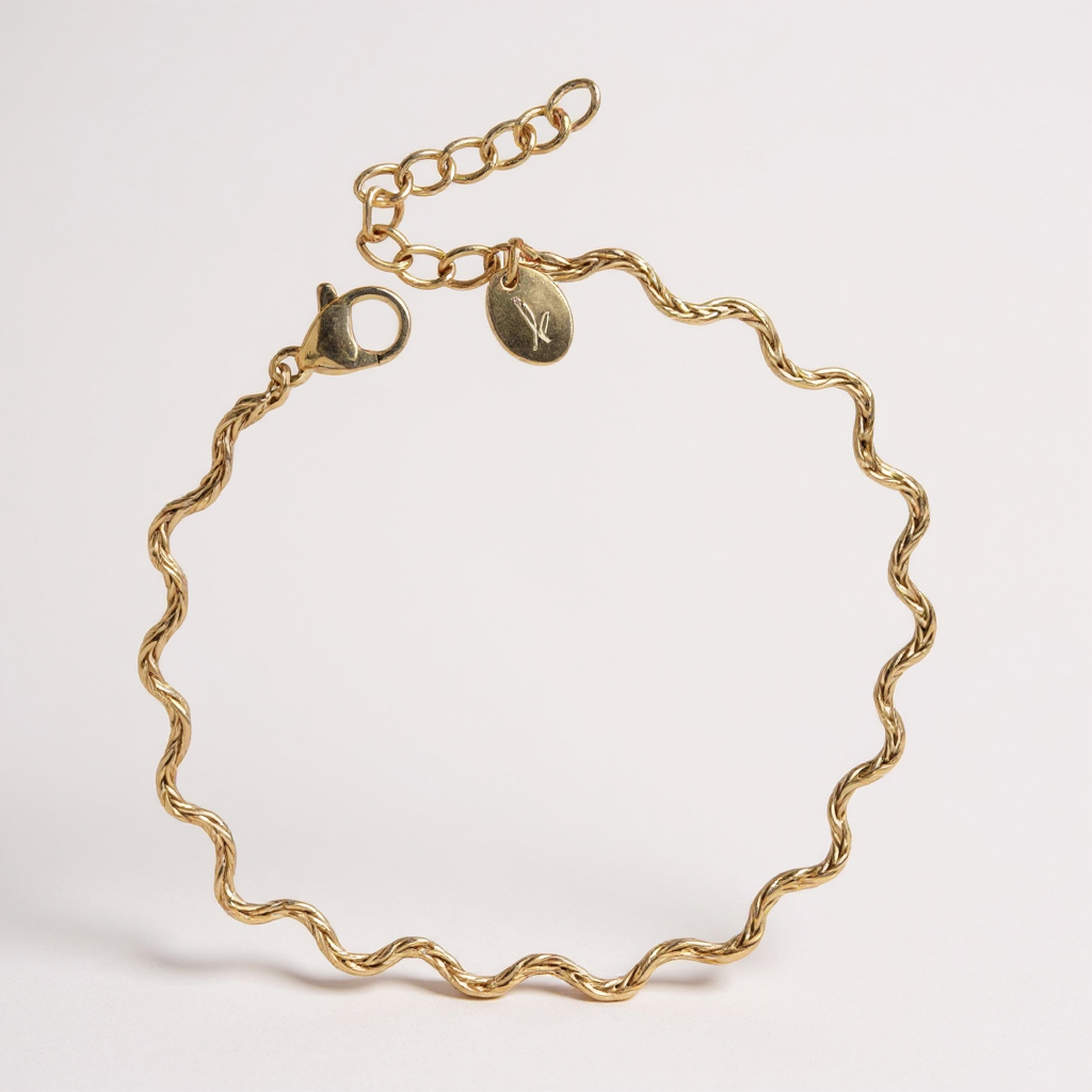 Bracelet sur chaîne en acier inoxydable composé d'une maille zigzag.