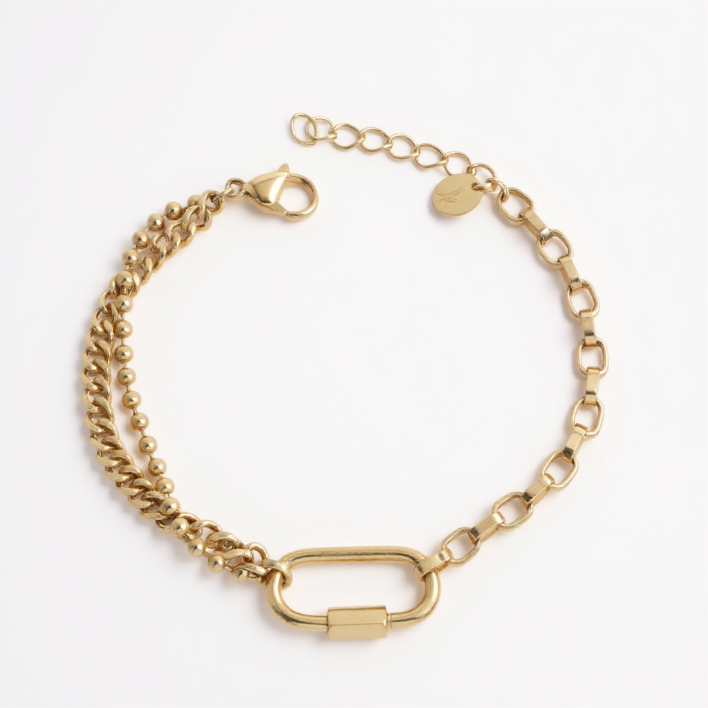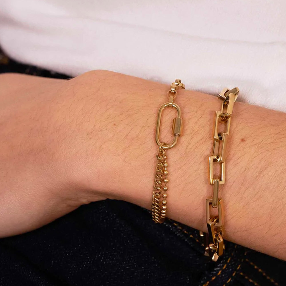 Bracelet en acier inoxydable composé d'un pendentif type fermoir à vis pour accueillir des lockies, avec différentes mailles (rectangulaires, gourmette et boules).