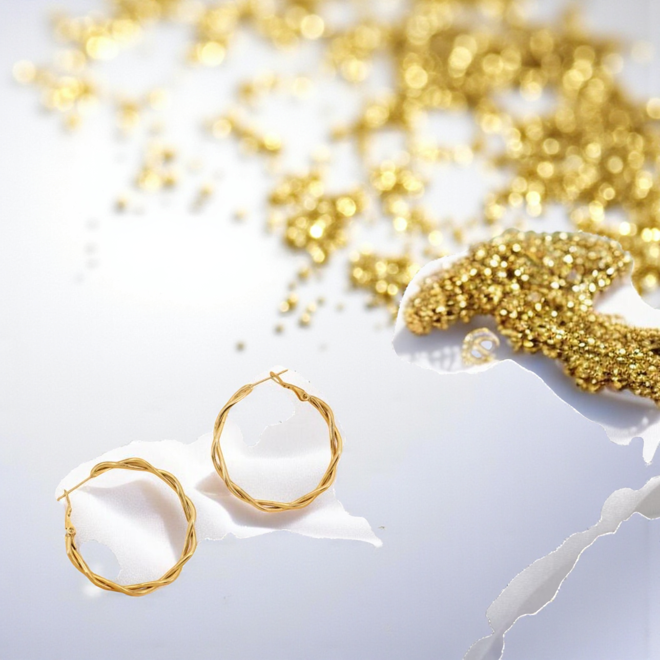 créoles torsadées avec 2 fils entrelacés en acier inoxydable pour femme 0324200. Le diamètre est d’environ 40mm. Ces boucles se fixent à l'oreille percée grâce à un fermoir hoop.