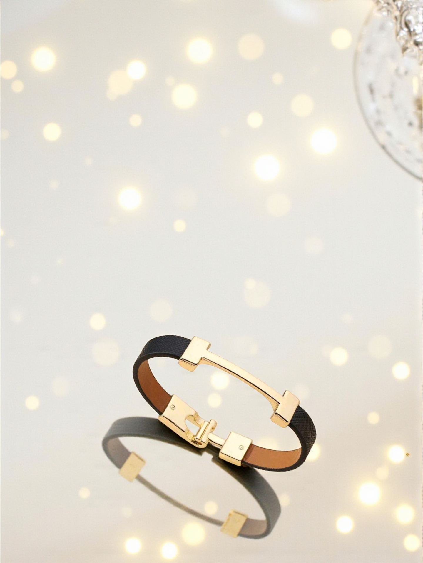 Bracelet cuir Peut être porté des 2 cotés, le fermoir est superbe (voir dernière photo)