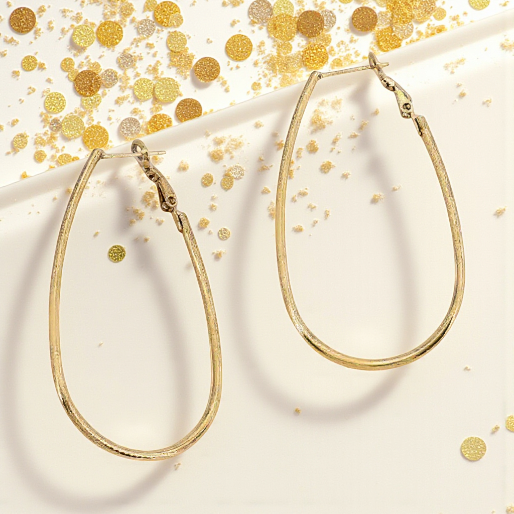 grandes créoles en acier inoxydable de style minimaliste en forme de goutte pour femme . Les dimensions sont d’environ 35x55mm.