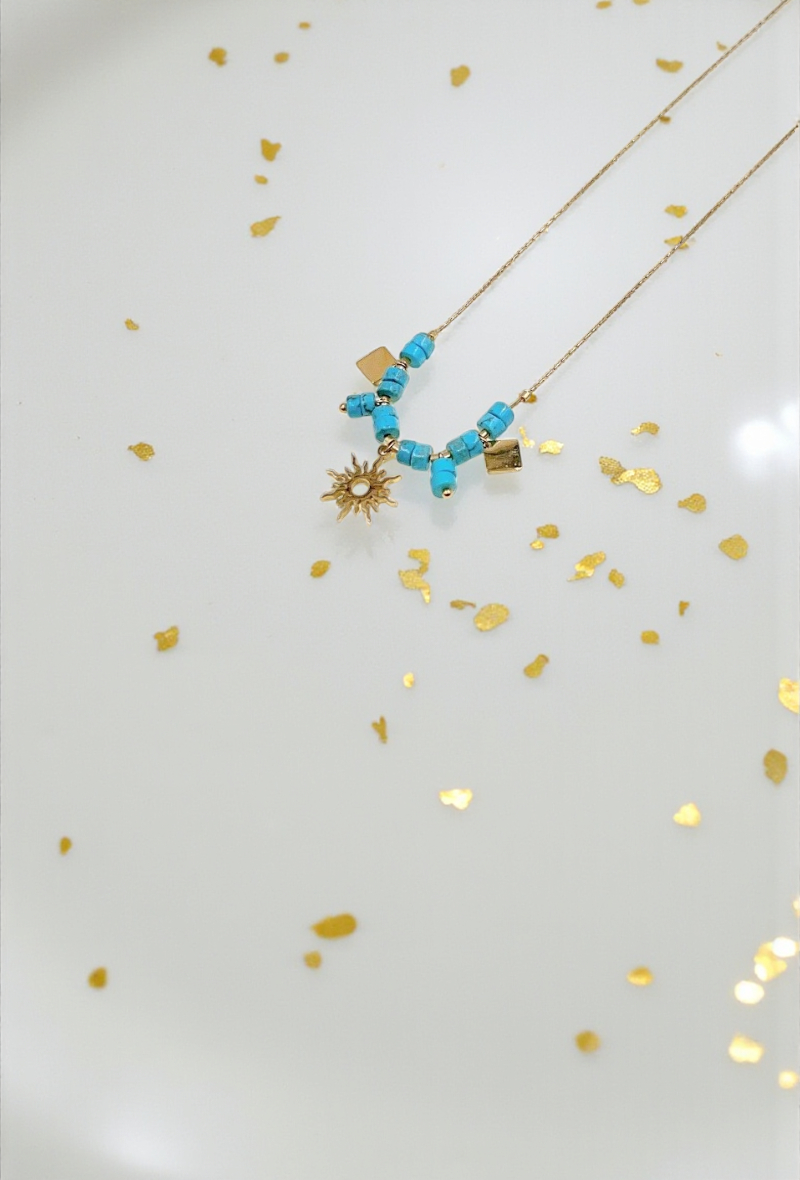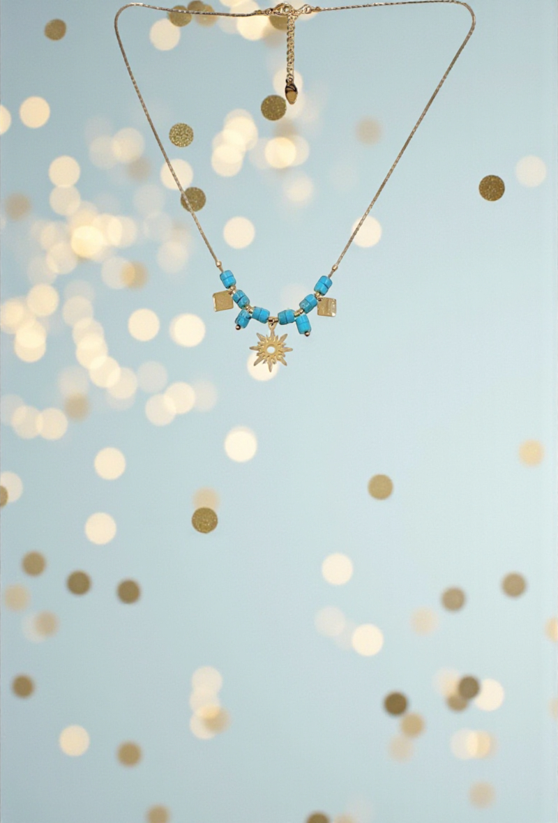 collier avec pierres véritables et pampilles dorées en acier inoxydable