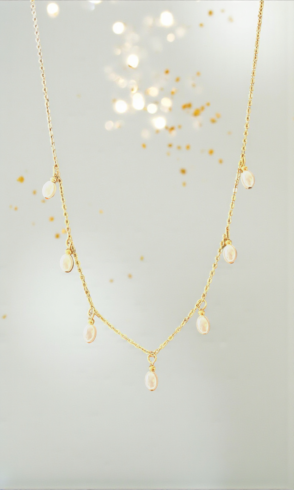 Collier fin en acier inoxydable avec des pampilles en perles de nacre