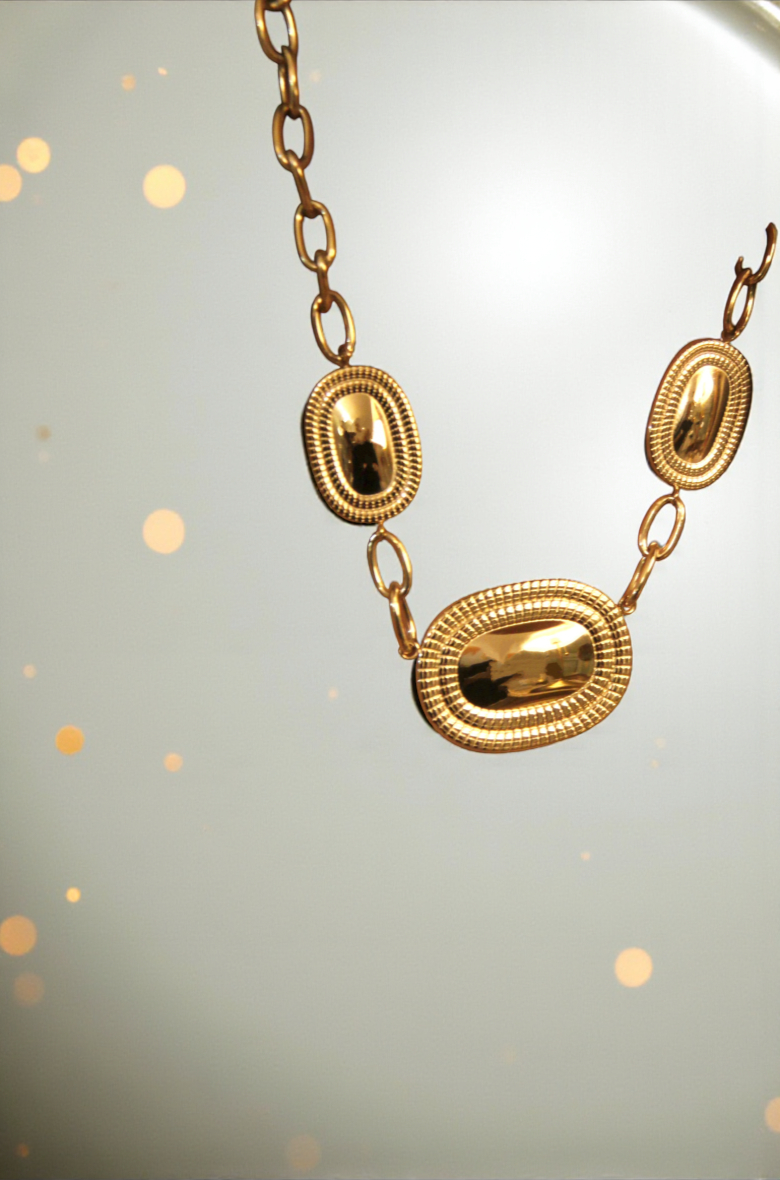 un collier plat avec 3 médaillons - Collier 45+ 5 cms - poids 35 grs
