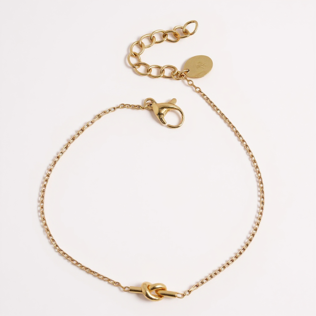 Bracelet sur chaîne en acier inoxydable orné d'un pendentif en forme d'un noeud.
