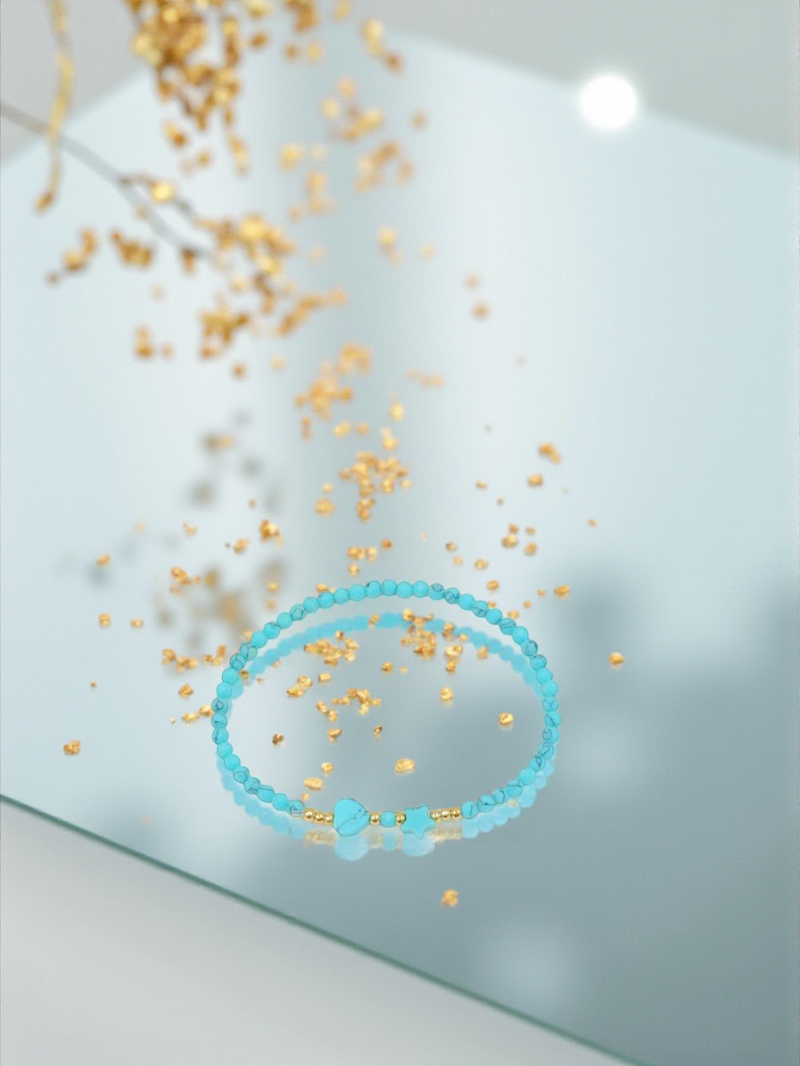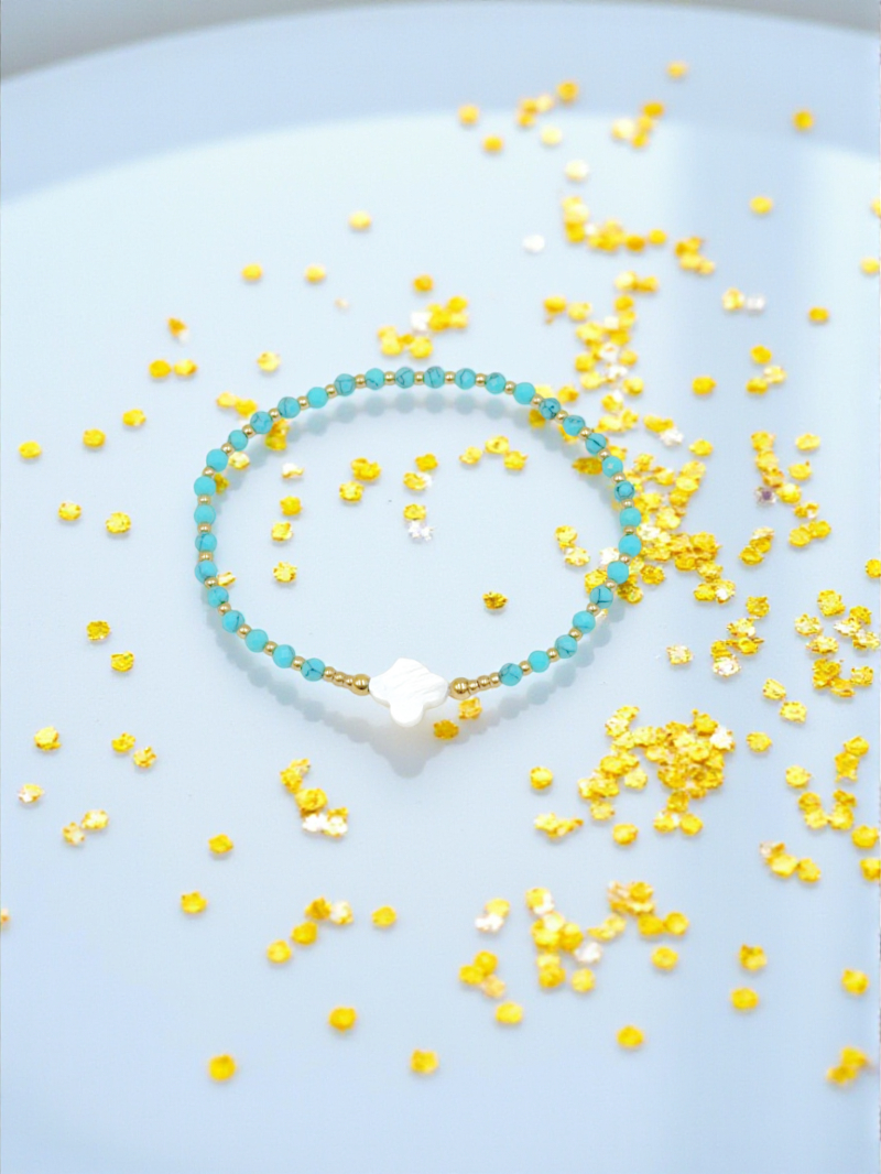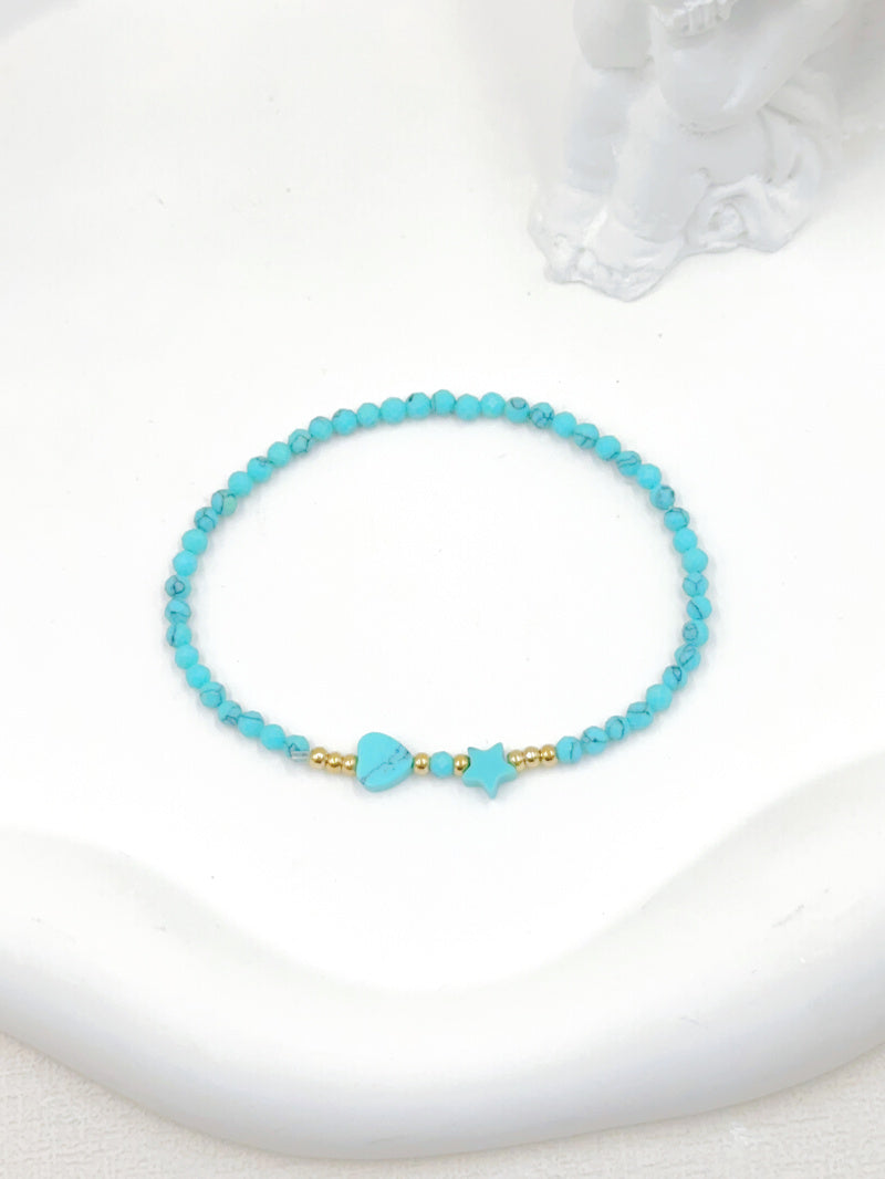 bracelet élastique et acier inoxydable - perle de couleur turquoise -