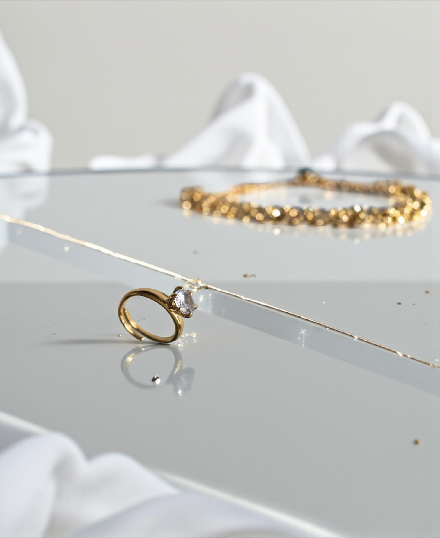 Bague réglable avec un brillant solitaire - Façon bague de fiancailles -
