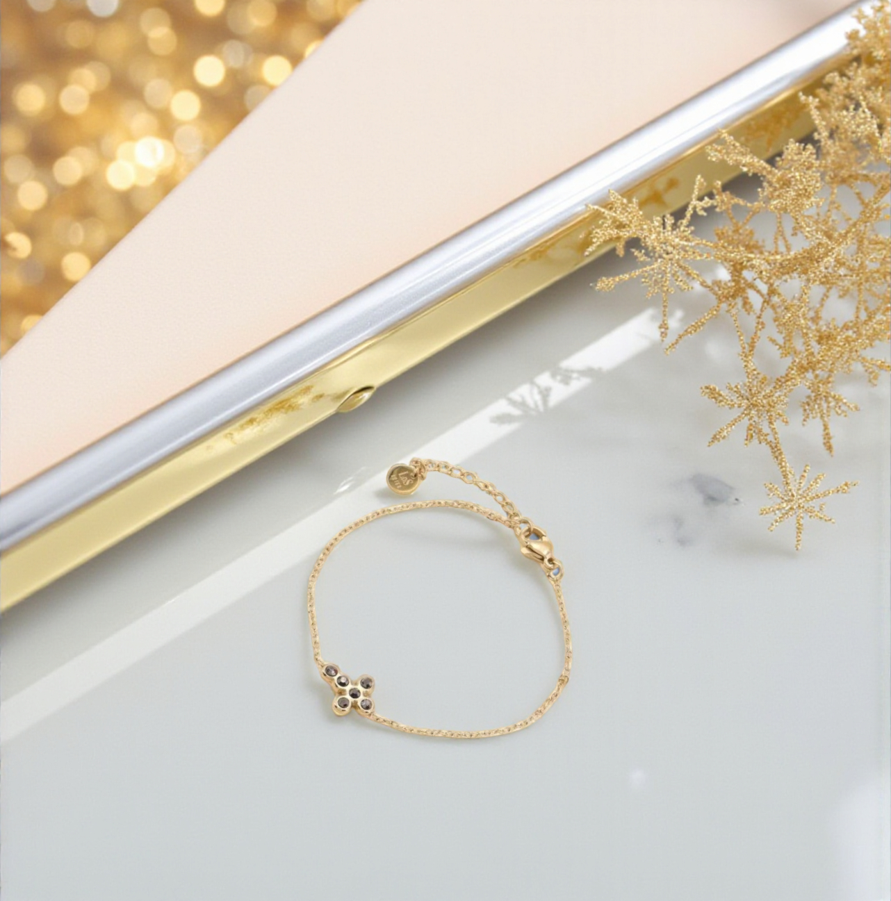 Ce bracelet bohème-chic à strass mesure 15cm déployé et son charm croix 1x1cm. Ce bijou est ajustable grâce à une chaînette d'extension de 5cm et son fermoir mousqueton