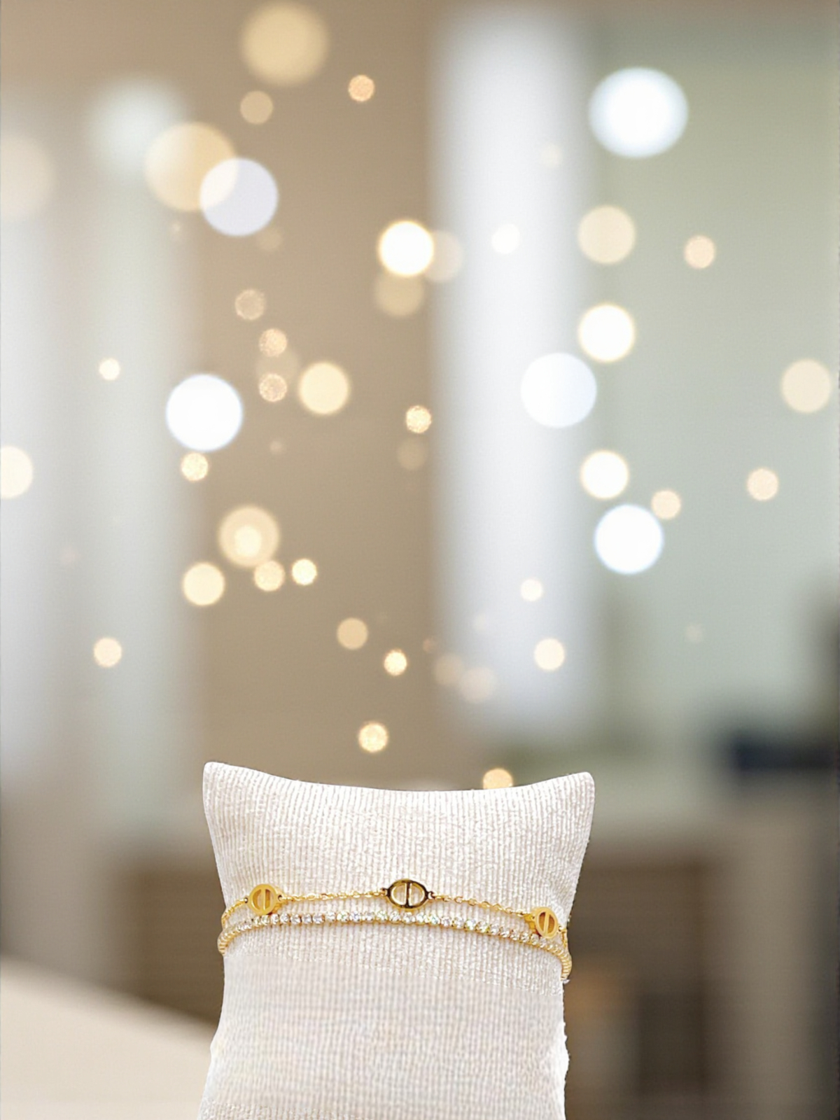 Bracelet double chaîne en acier, orné de strass zirconium,