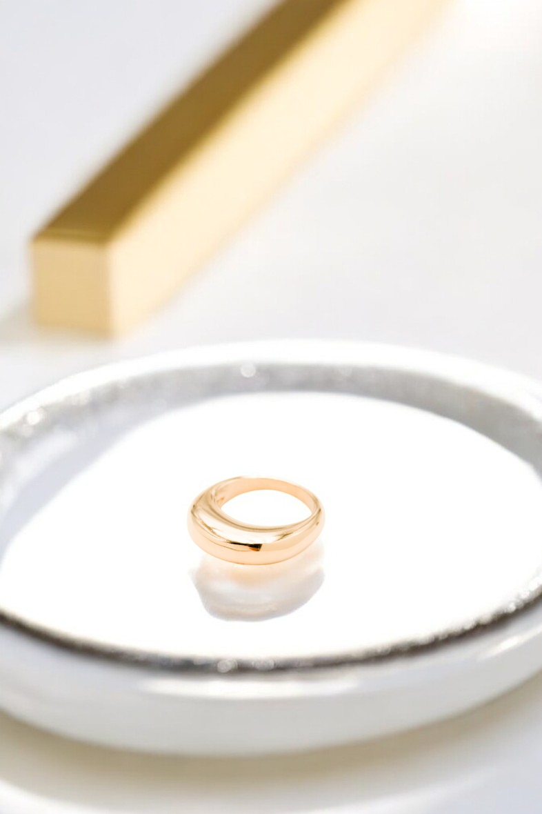 Bague en acier inoxydable composée d’une forme bombée. La bague est rigide et existe en 53- Dorée- Hauteur de la bague : 6 mm