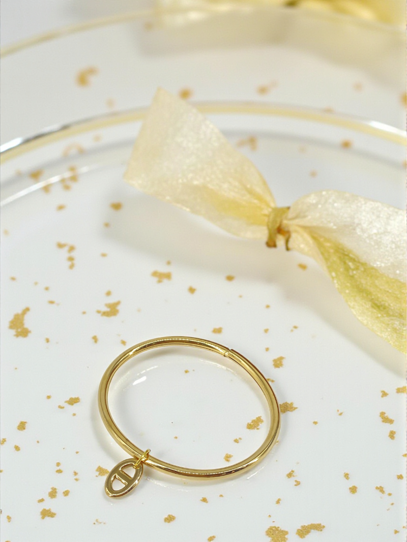 Jonc légèrement ovale - Fermeture a clic invisible- avec une pampille grain de café-